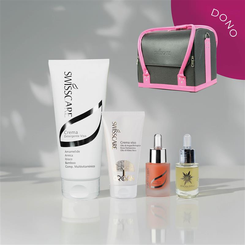 Una routine viso completa per detergere, nutrire e illuminare la pelle, con quattro essenziali Swisscare selezionati per un risultato più fresco e curato.